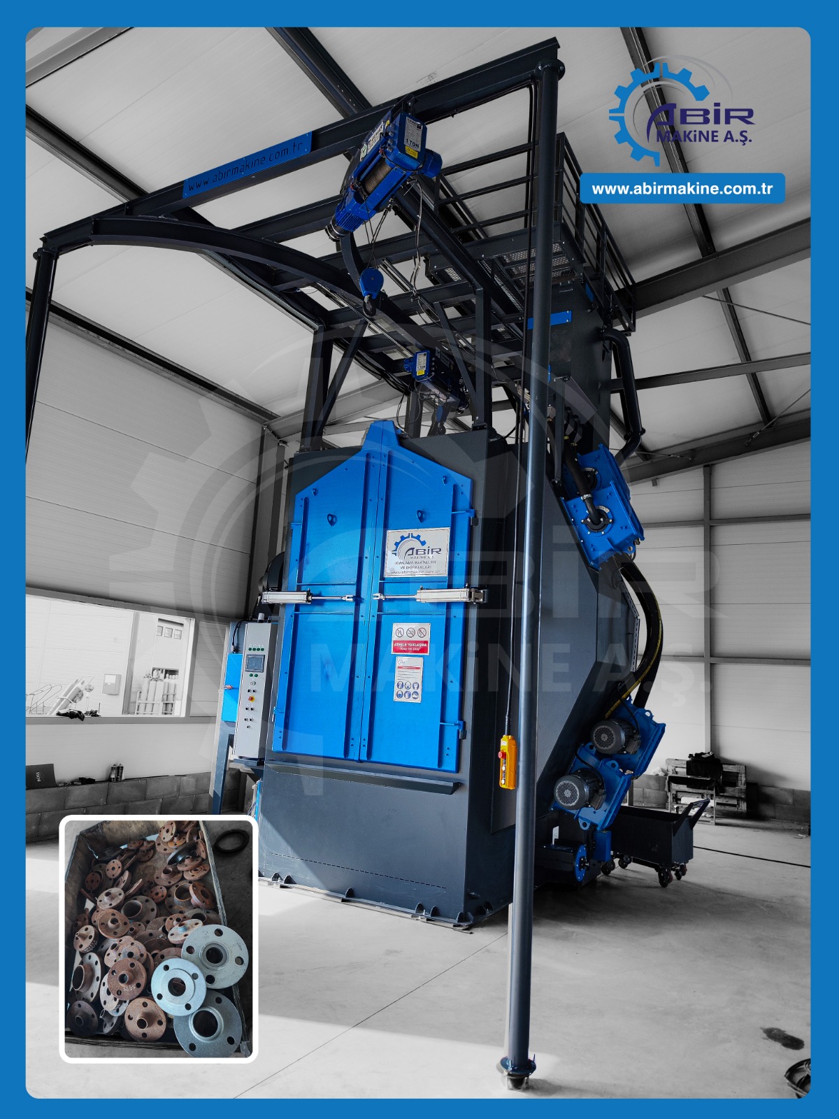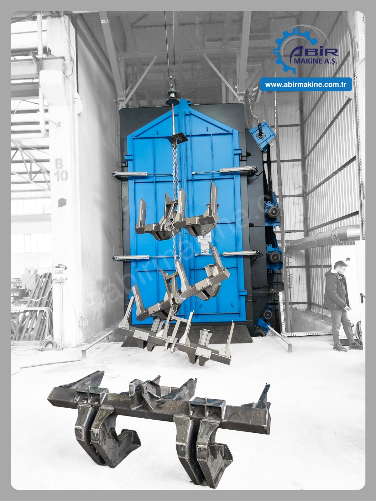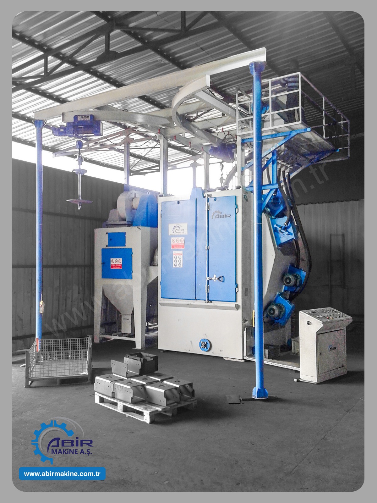 The hook type shot blasting machines are used for surface cleaning, pre-coating preparation or revision works on parts such as cast, pressed, heat treated, forged, finished product, semi-product, steel production, etc. Significant advantages of them are multi-way sandblasting, ability to sand various sizes of parts with irregular geometry. Sandblasting periods can be adjusted by digital clock we use on our machinery depending on part type and sanding surface. This products are also known as hook type sandblasting machines.